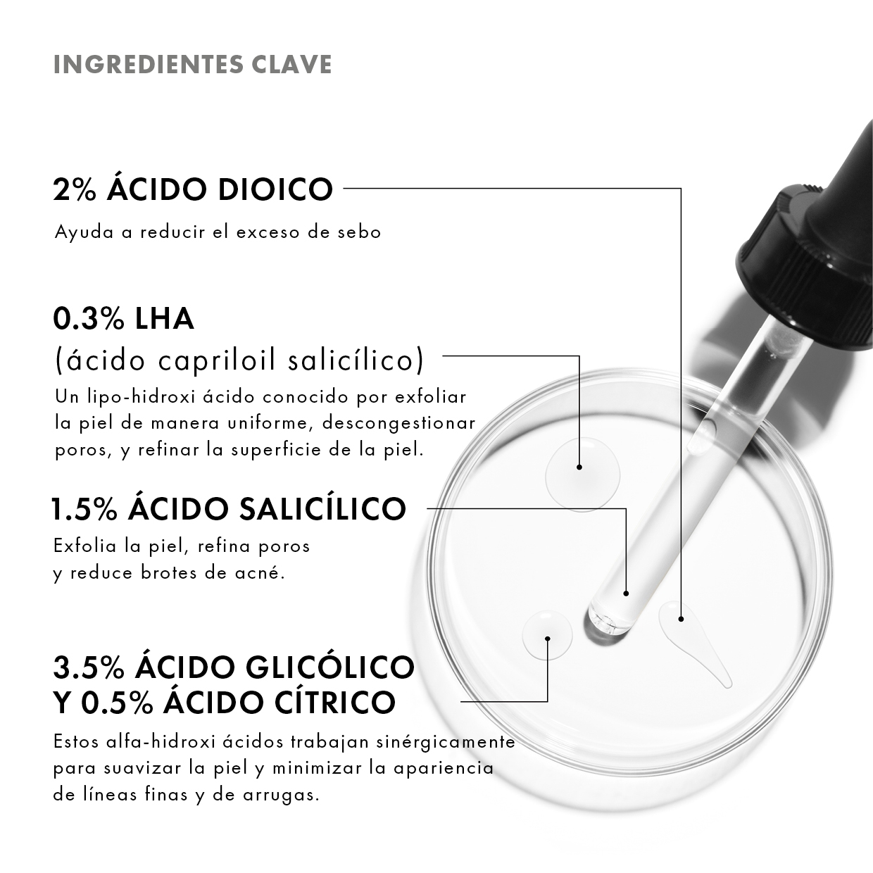 Sérum facial con ácido salicílico libre de aceite, que ayuda a reducir la formación de imperfecciones al mismo tiempo que mejora los signos visibles del envejecimiento.